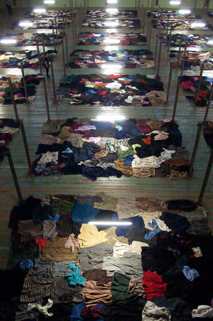 当你穿过走廊,会看到随地摆放的成千条裤子、衬衫、毛衣和裙子,你不得不想那些曾经穿着它们的人们。感觉似乎刚发生的事情,这些衣服的占有者已被送往远方的一处无人地带。