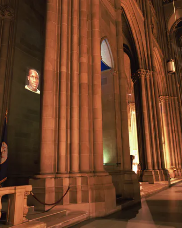 Devised as his master’s thesis at Yale University, Bradley McCallum, in collaboration with Jacqueline Tarry, created a sequence of multimedia installations in altars of a church. Unlike some artists today (or designers online, for that matter), McCallum and his partner have something to say: perspective on police violence, which has been making headlines in New York City during this past year.