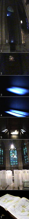 In one of the smaller chapels of the church is another installation on a similar subject matter. Faces of victims are printed on pieces of white cloth, which are hung from the ceiling. With the voices of families narrated in the background, the space becomes surrealistically real, bringing the presence of the dead.