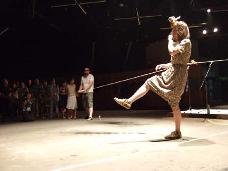 Their performance was sometimes a music live concert, and other times dancing with white colored faces, which was quite cryptic, honestly. However, nobody doubts it as long as seeing happy faces of local people whom the 7 artists were working together. One of the artist showed a performance to listen to the voice coming down from animals. To the question “Will the Triennial succeed?”, the answer with a deer’s help was YES.