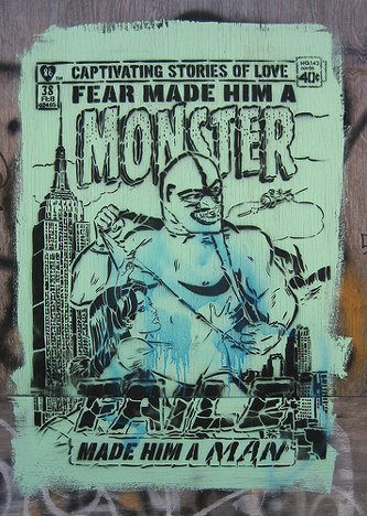 Down the street, I discovered what looked like a cover of a tawdry pulp fiction novel stenciled on some wooden scaffolding by a collective known as Faile… from that moment on, I was hooked. With a little patience, you too can develop a street art habit.