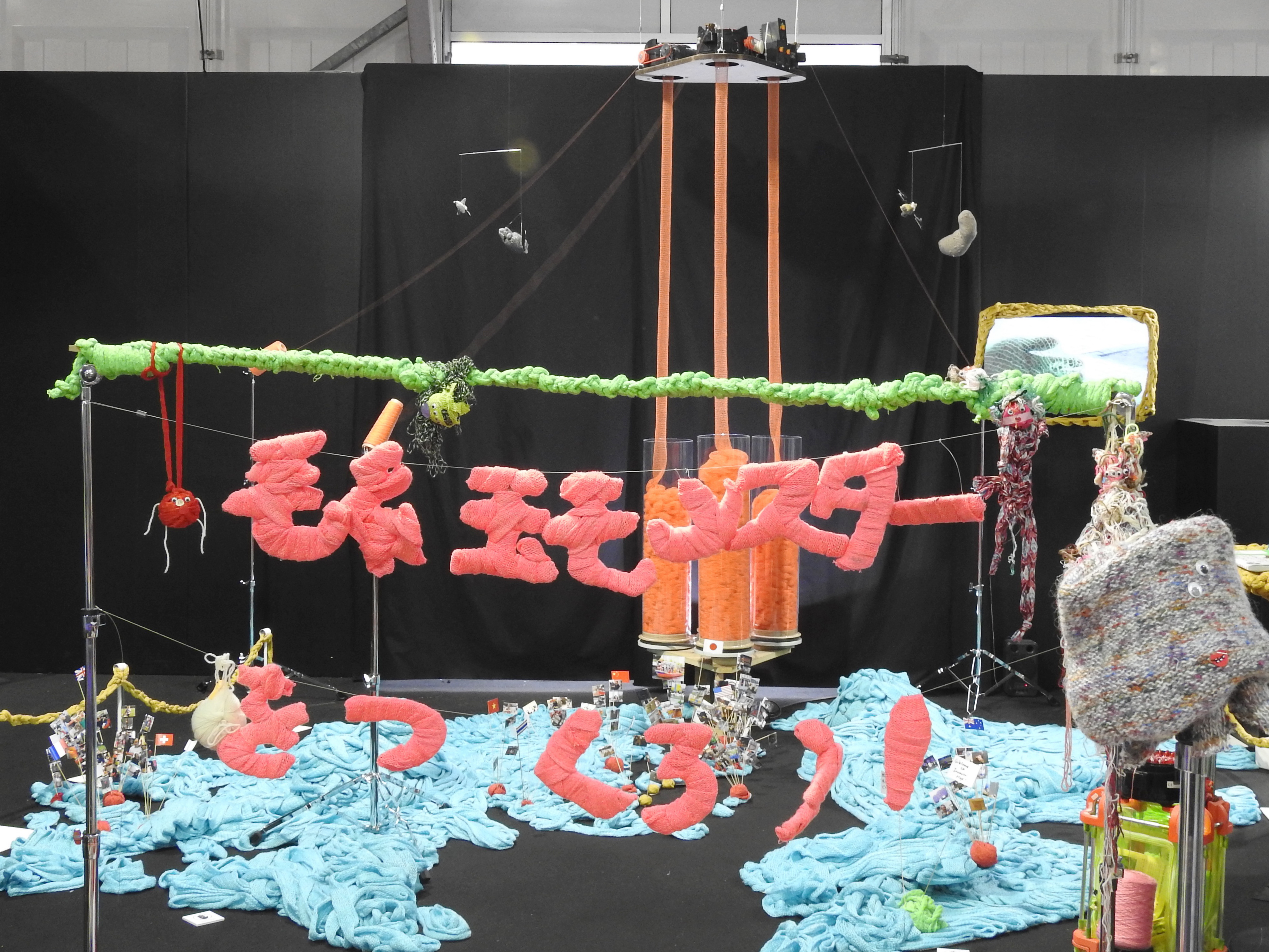 At the “Super Robot Exhibition”, imaginative robots and extension devices with the latest technology are exhibited. Pieces such as “Knit Invasion” by Saki Chikaraishi, who had an interview for the SHIFT magazine, was re-exhibited. She is a hyper knit creator as a communication medium. Based on a theme of connecting the world gently, she conducts many projects which envelop a town and space by knitting.