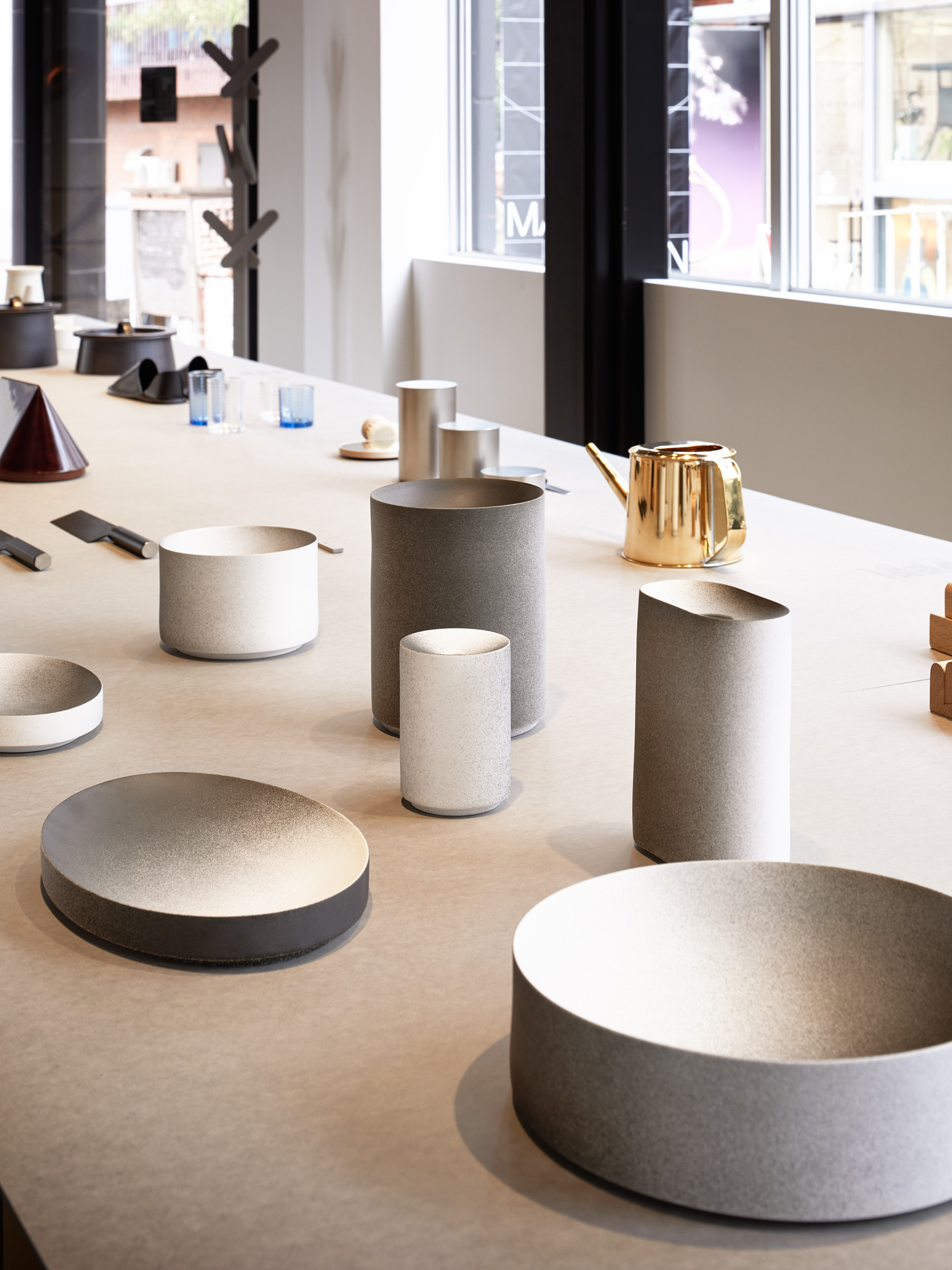“Swiss Design / Made in Japan”, an exhibition to introduce Swiss design created domestically in Japan, was held at Meiji-Jingu Mae. A collaboration of handmade Arita pottery and sophisticated Swiss design was displayed (photo below). There were also products using Wajima lacquer and Japanese blacksmith, leading us to experience high-level techniques by Japanese artisans. This venue will turn into Swiss House during the Olympic Games Tokyo 2020, to offer Swish cultures and experiences.