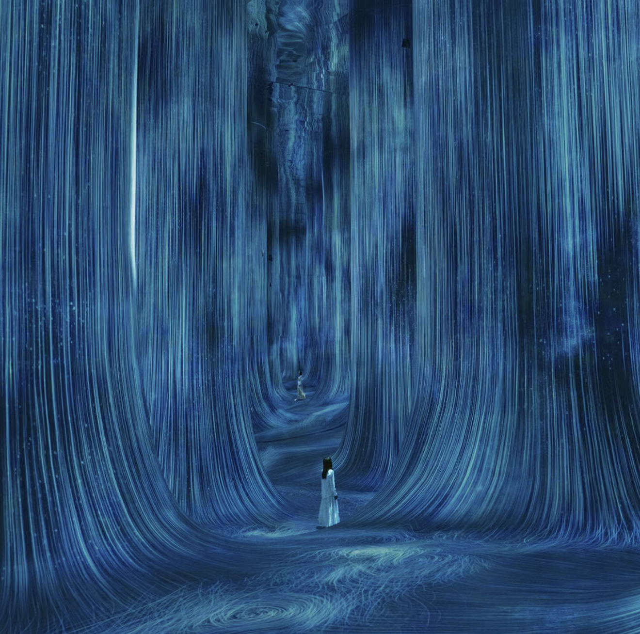 As you move through tunnels connecting the artworks, interactive experiences come alive. In Flutter of Butterflies, touch brings flurries of butterflies to life, filling the space with motion. While the swarm appears chaotic, simple interactions between individual butterflies create moments of spontaneous order. The work exists directly alongside the viewer — walls and floors become points of emergence rather than boundaries, allowing visitors to inhabit a shared, creative space. Similarly, Wind Form transforms the environment into a living flow, where countless particles trace shifting lines of motion like visible wind. Both installations invite visitors to move freely, experiencing space not as observed, but as physically felt.