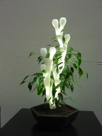 ポーランドのインダストリアルデザインの学生たちのグループがデザインした植物の鉢からにょきにょきと生えているようなランプ。ちなみに植物も本物。