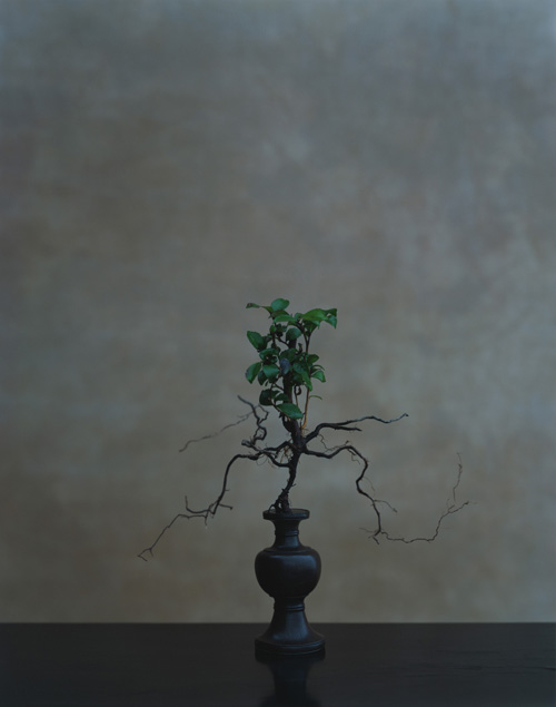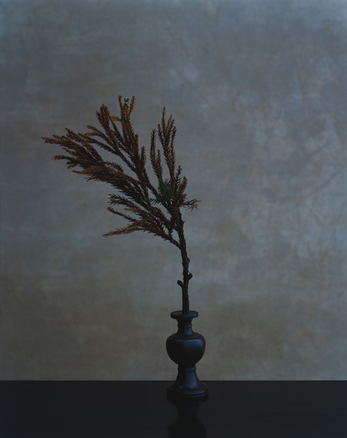 川瀬氏は、枯れた花はエネルギーの頂点だという。写真からは確かにエネルギー感じられたが、枯れた植物になぜエネルギーを感じるのだろうかと思った。写真を見るうちに、そうか、花や葉は枯れた後に土に還り、分解され、また新たな生が育つ環境に生成される。枯れつつある植物も生態系の大きな流れの一部なのか、ということに思い至った。森羅万象ということばが思い浮かぶ。だが、もっと原始的なことばが合うような気がし、これは言語化される前のイメージなのかもしれないと思う。さらにここに表されているのは太古だけではなく、今によみがえるイメージではないか。その掴みかけた感覚にもっと近づきたく、また写真の前に立ち、ことばと自然の無為の間に身を鎮める。